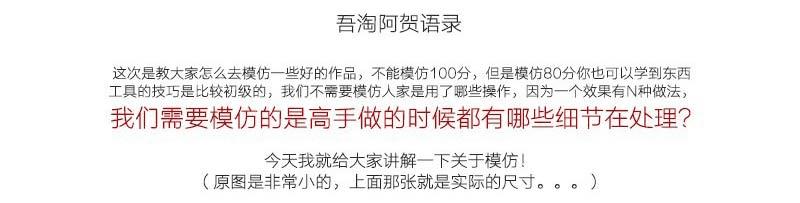然后就有了现在的感觉;我一直和同学们说,模仿一个好的作品会让你学到非常多的东西;你模仿一个100分的作品,做到80分,也是个好看的作品!相反你如果模仿80分的作品,那你能做到60分就不错了!所以同样是模仿,就要模仿最好的!这样你可以学到更多的东西,我这里不是说你学到那些软件工具的应用;而是高手在对细节的处理上的东西!虽然我们看不到高手是怎么做的,但是我们可以不断的去摸索,去对比;等到时候我们自己在做合成的时候,我们就可以应用上去;学以致用。