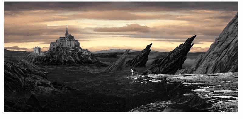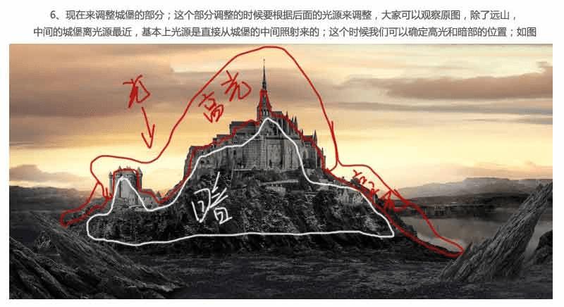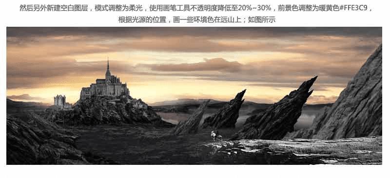 如何在Photoshop中合成骑士站在山间瞭望城堡的场景?(4)