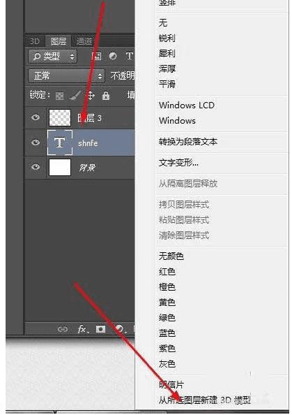 3、选取要3D的图层,右键选择“从所选图层新建3D模型”在此之前不要将图层栅格式化。不然后面就没有自己想要的结果的。