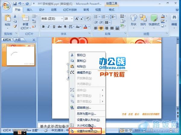 5、 然后右键单击图形,从弹出的右键菜单中选择设置形状格式。