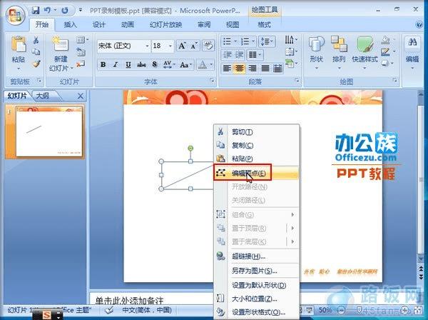 2、 画出图形,双击完成,我们只需要画出一条直线即可,右击图形,选择编辑顶点。