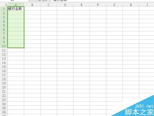 1、首先启动wps表格2007,选择单元格a1输入文字“银行名称”。