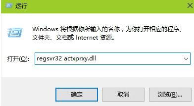 首先按Win+R打开运行,输入regsvr32 actxprxy.dll回车后会弹出一个DllRegisterServer in actxprxy.dll succeeded的窗口,点击确定即可。