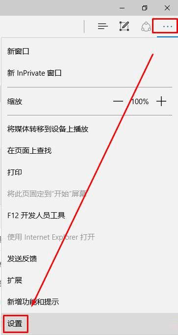 1、在Edge浏览器中点击右上角的【...】更多按钮,点击“设置”;