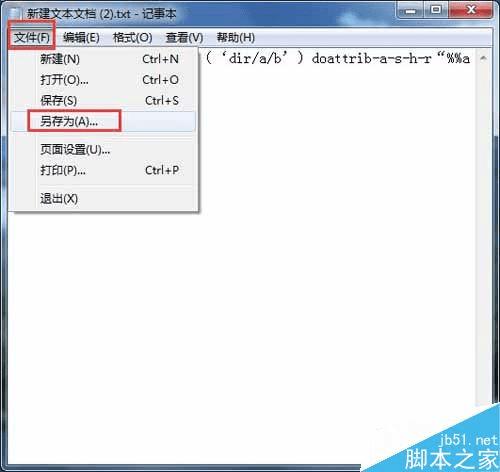 代码复制进去后,点击左上角的“文件”,然后点击“另存为”,如下图所示: