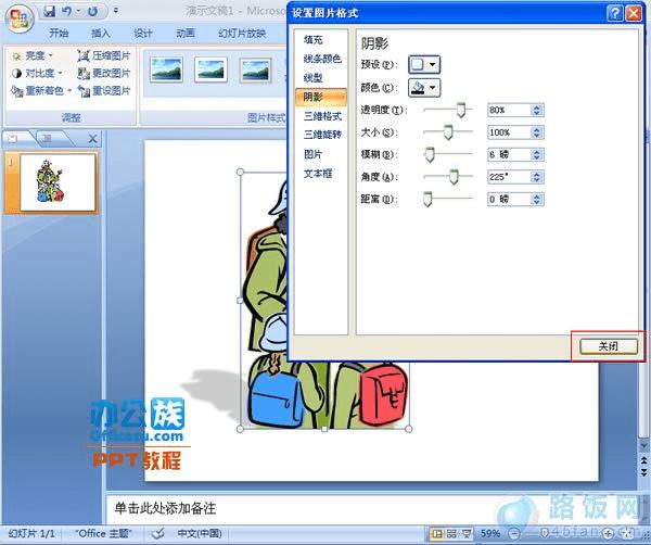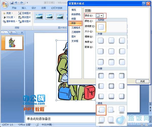 PPT2007幻灯片中的图片和文字如何添加阴影?