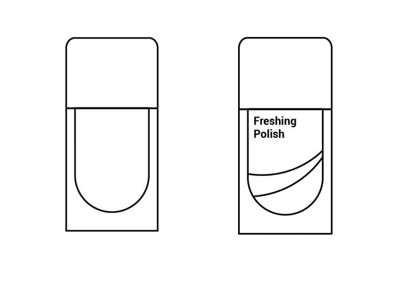 按照我们上一步对瓶身的形状组合,指甲油的瓶身是很容易做到的事。关键是对包装的装饰细节上的考虑,作为一个图标,你没有办法去穷尽所有的细节,因此需要抽取更多装饰的特征。最好的方法,是把自己当作一个包装设计师,并搭配着一整套图标的风格特征进行思考。