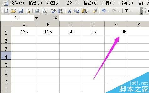 A1单元格数字是425;B1单元格数字是125;C1单元格是50、D1单元格是16