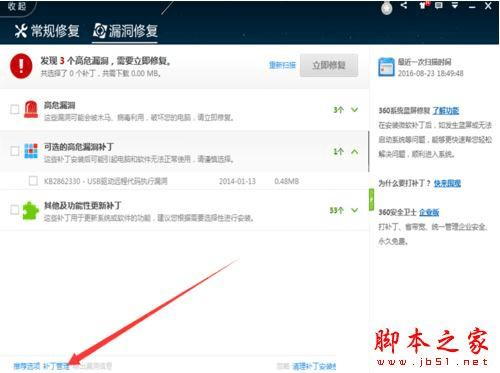 3、在漏洞修复中点击左下角的“补丁管理”;