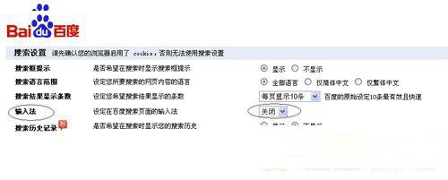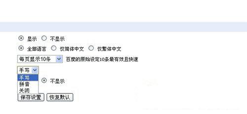 此时我们看到在百度搜索旁面没有手写输入的提示,我们看页面右上角“搜索设置”,如图: