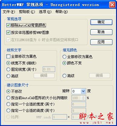 单击右键,选择“复制”,转到BetterWMF应用程序界面,选中常规选项中的”移除AutoCAD背景颜色“和”按实体范围修剪WMF图像“;