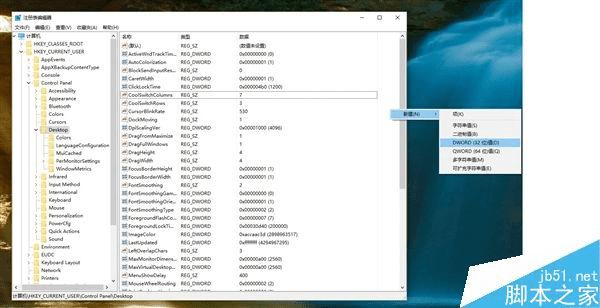 2.定位到 HKEY_CURRENT_USER\Control Panel\Desktop(Build 14942预览版及更新用户可直接粘贴到地址栏)