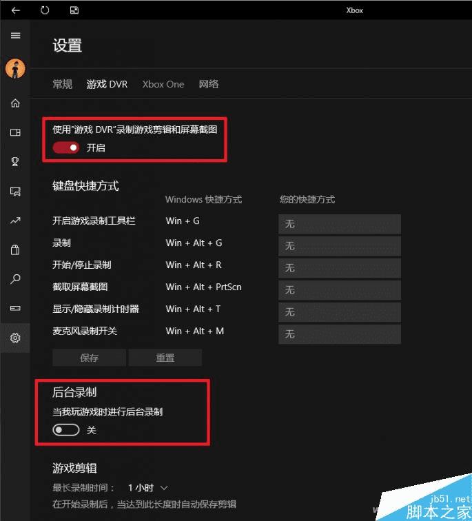 解决办法也很简单,在Windows Xbox中关闭“当我玩游戏时进行后台录制”,或者直接关闭“使用游戏 DVR录制游戏剪辑和屏幕截图”。