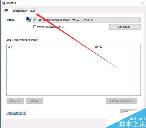 4、在颜色管理窗口中,点击上面的“高级”标签