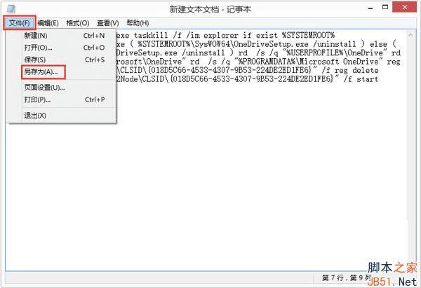4、在另存为窗口,给它起个好听的名字,就叫“OneDrive Uninstaller.cmd”吧,这里一定要注意将保存类型设置成“所有文件”,否则不能保存成功;