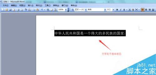 3、按下键盘上的Ctrl+A全选我们刚刚输入的文字,如图所示: