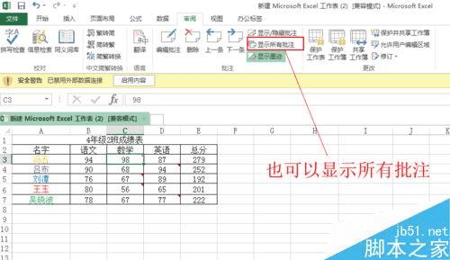 6、或者可以在审阅中,找到显示所有批注,也可以全部显示。