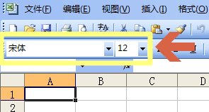 1、在在用excel2003建立表格时,会自动采用图中所示的默认的字体和字号。