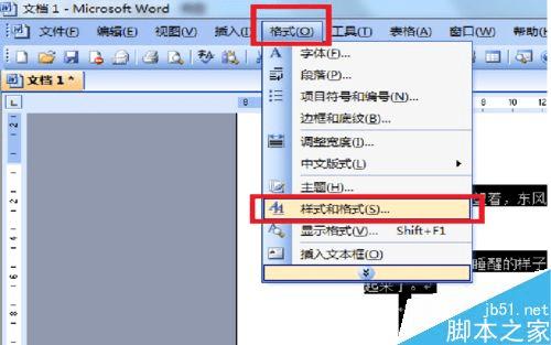 3、选择菜单栏上的【格式】——【样式和格式】;