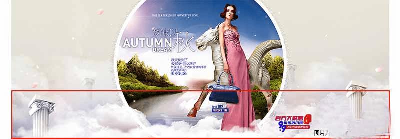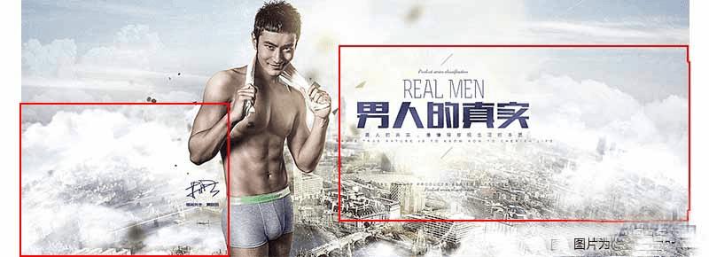 这里特别提示,有时候我们做图片除非有特定的要求,不要过分想要展示人物的全貌,由于人体是长条形,如果显示全貌就会给画面带来大量的空白,而在电商banner中如果没有特定的需求,有时候也是可以舍去人物的头部,头肩部分是一个三角形,从构图来讲,头部两侧有时候往往会是图片中的空白区域,如果banner高度有限,空白部分又很多的情况下,我们可以果断的把头部去掉,保持画面饱满感。当然如果跟摄影师沟通好在拍摄的是还可以让模特将手臂弯曲抬起做些动作或者保持斜身站立、头部侧歪等造型保留模特头部是极好的。(毕竟模特大部分都是美女嘛~)