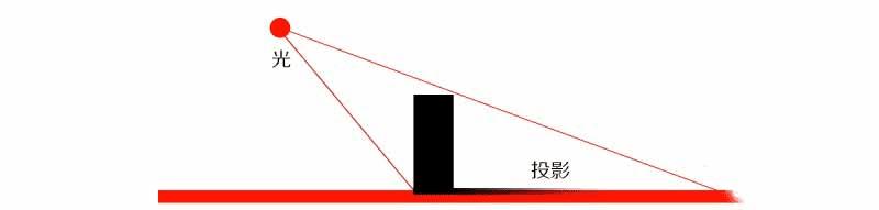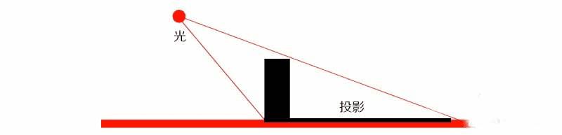 知道了影子的基本构成,我们制作起来只需要思考两件事就可以了,光源来自哪里,影子什么形状。光源的位置决定了影子的走向,物体的形状决定了影子的形状及体积。我们不做精确的科学计算计算性的东西是值得提倡的,但是不太受用在设计领域的,严格按照公式去算影子到底该多长不是设计师该做的东西。我们只需要理解一个简单的图解: