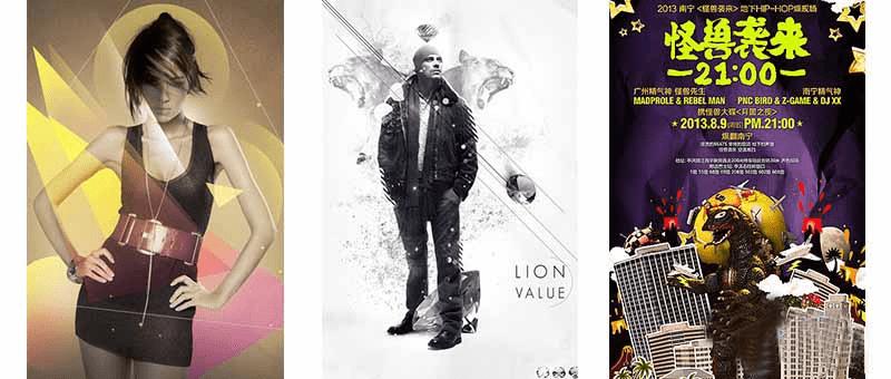 03、拼合篇只要肯好好找素材,我们完全可以自主的做一些效果很棒的拼合型合成,拼合型合成是合成手法中最简单、易懂、易上手的形式,主要考验排列能力。如下图展示: