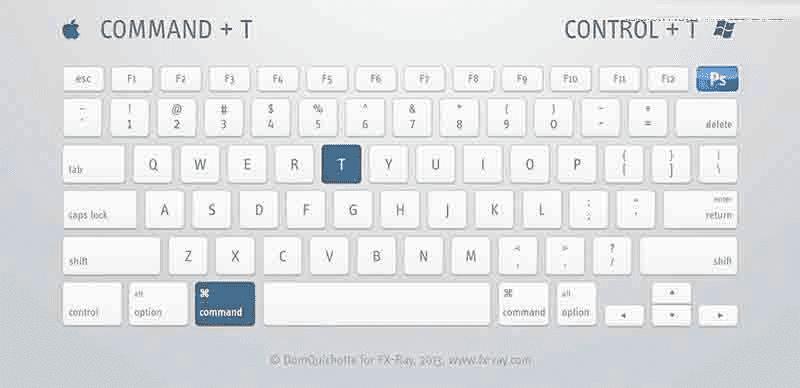 该快捷键,主要对图层进行旋转、缩放等变形调整,同时可以拖动修改图层在画面中的位置,是极为常用的功能键。