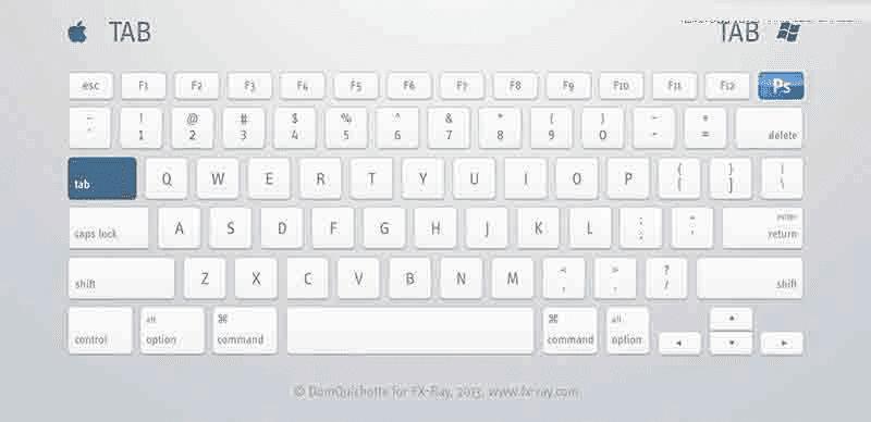 左上为Mac快捷键,右上为PC快捷键