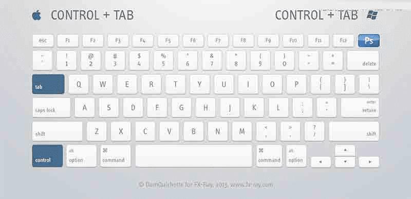 这组快捷键是针对多PSD文件同时打开,同时工作的情况时,按下Ctrl+Tab则会在PSD文件之间切换。