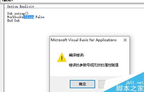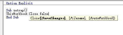 3、close方法必须有一个对象,对象为workbooks,在这里我们使用的thisworkbook可以直接使用参数。而workbooks使用参数会发生错误。