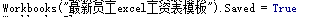 4、我们正常的使用方法是使用workbooks对象,这样可以指定关闭的工作表,比如workbooks(“最新员工excel工资表模板”)。如果我们不需要在保存退出的时候弹出提示框,那么我们加上这样一个语句workbooks(“最新员工excel工资表模板”).saved = true