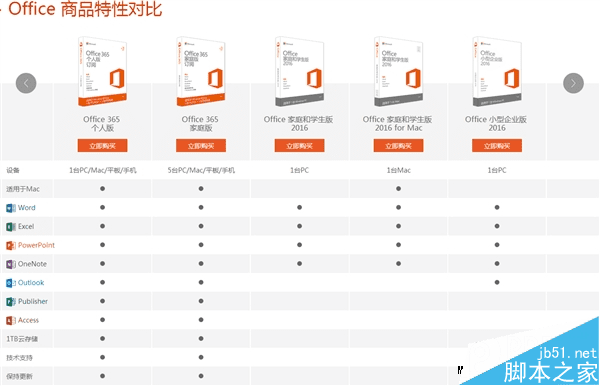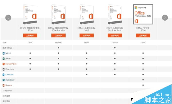 你还可以选择Office 365,包含完整的Office应用程序和1TB OneDrive等各种云服务,适合家庭使用,支持按年订阅,未来可直接获得新版Office,比如现在就已经可以直接获取Office 2016。
