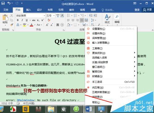 1)先打开一个文档,调出万能五笔输入法。注意,一定要先打开一个文档,然后才能调出设置。至于文档类型是什么无关紧要,doc或txt等均可。