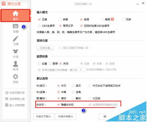 隐藏和显示万能五笔输入法状态栏的方法技巧
