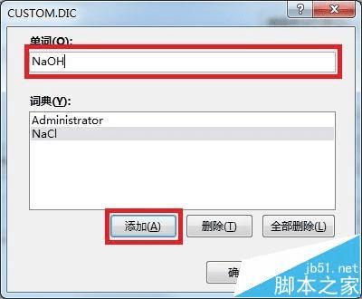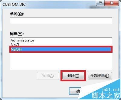 7、添加后再词典列表中看到该词,如果不需要了,还可以点击删除,最后确定即可。