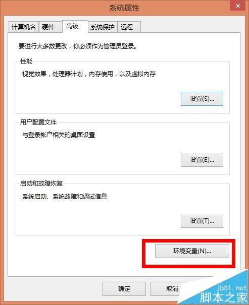 3、单击系统属性界面的右下角的环境变量按钮: