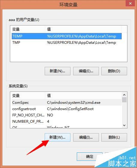 4、在环境变量界面单击系统变量下的新建按钮,如图所示:
