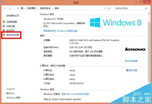 2、然后单击左侧高级系统设置,如图所示: