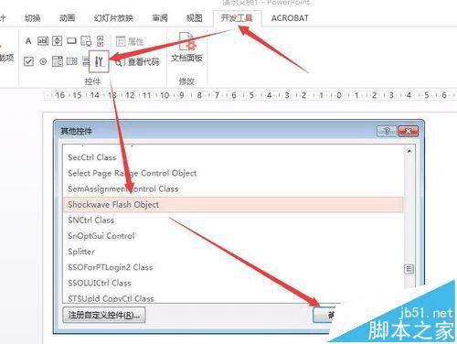 3)在弹出的对话框中找到并选择“Shockwave Flash Object”控件。
