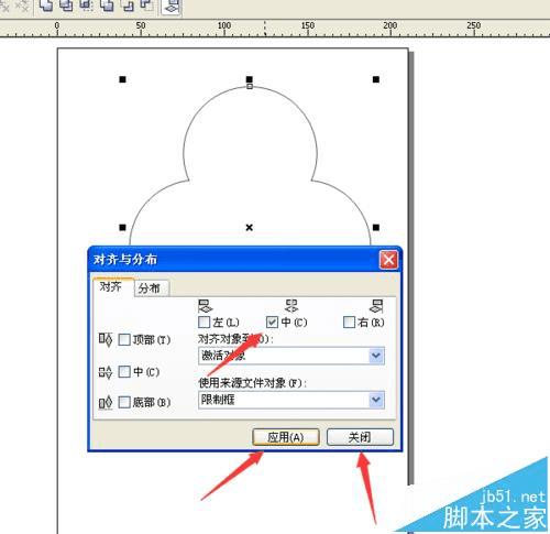 12、将左右居中勾选上,再点击应用,最后点击关闭。