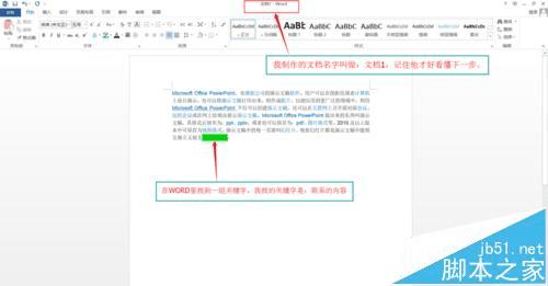 2、使用关键字定位的方式让PPT打开WORD文档并跳转至指定的关键字位置。