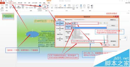 3、收到一位网络朋友遇见的问题:“PPT设置好后转移到一台电脑就打不开word文档了”,首先说下运行原理:PPT是根据你设置的路径找到word文档的,当你改变word文档存放位置后,原设置的PPT打开路径就会失效,所以,大家以后如果需要换一个环境运行制作好的PPT,一定要解决好路径问题,解决这个问题办法就是进入PPT文档重新编辑word文档存储路径,或者把word文档摆放至原PPT设置好的路径位置上。