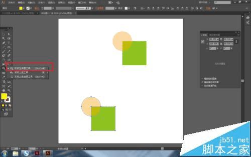 2、复制一份圆形和正方形,然后在左侧工具栏找到形状生成器工具,并按照图示方法逐个点击图形的每一个部分。