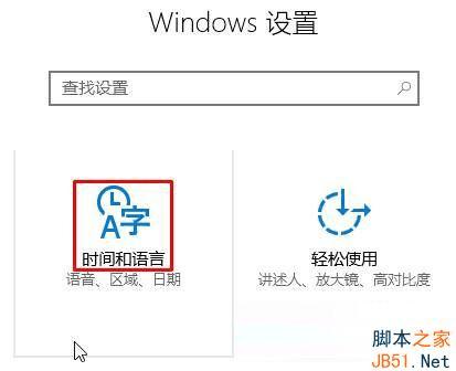 1、按下“Win+I”组合键打开windows 设置 ,点击“时间和语言”;