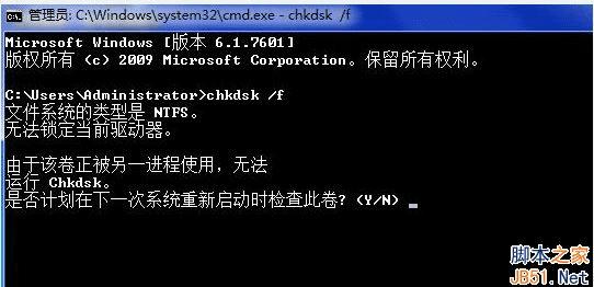 3、最后可以在提示是否计划在下次系统重新启动时检查这个卷? (Y/N)时,按下Y,然后将电脑重启。