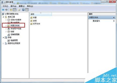 第三步点击打开共享文件夹,点击“共享”,我们可以在右方看到系统的共享文件夹