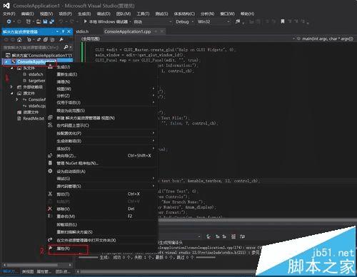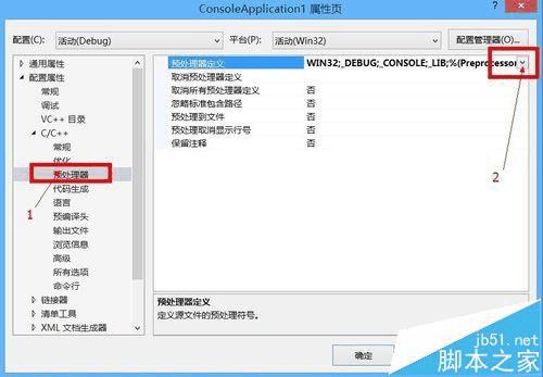 2、然后弹出文件的属性页,单击1“预处理器”,再单击2打开预处理器如下图