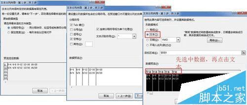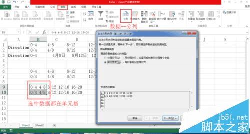2、选中数据所在单元格,再点击【数据】—【分列】,出现类似于导入数据向导的【文本分列向导】。