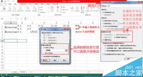3、点击完成后出现如图所示对话框,选择数据数据放置位置,就可以直接点击确定。在此对话框中可以点击属性。在属性中,可以选择是否调整列宽以及保留单元格格式,可以根据实际情况选择。