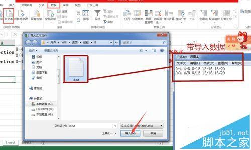 1、但如果数据很多,或者从其他软件导出的大量原始数据原始数据,我们则可以先将数据导入或者写入txt中。如图,在txt写入所需数据,通过【数据】—【自文本】选中所需要导入的数据。